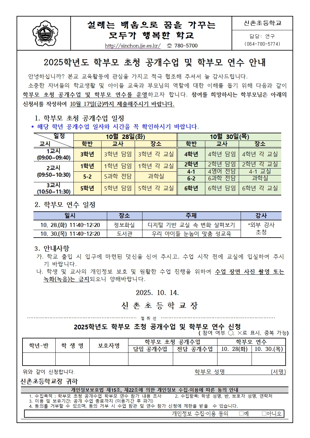 2025학년도 학부모 공개수업 및 학부모 연수 안내