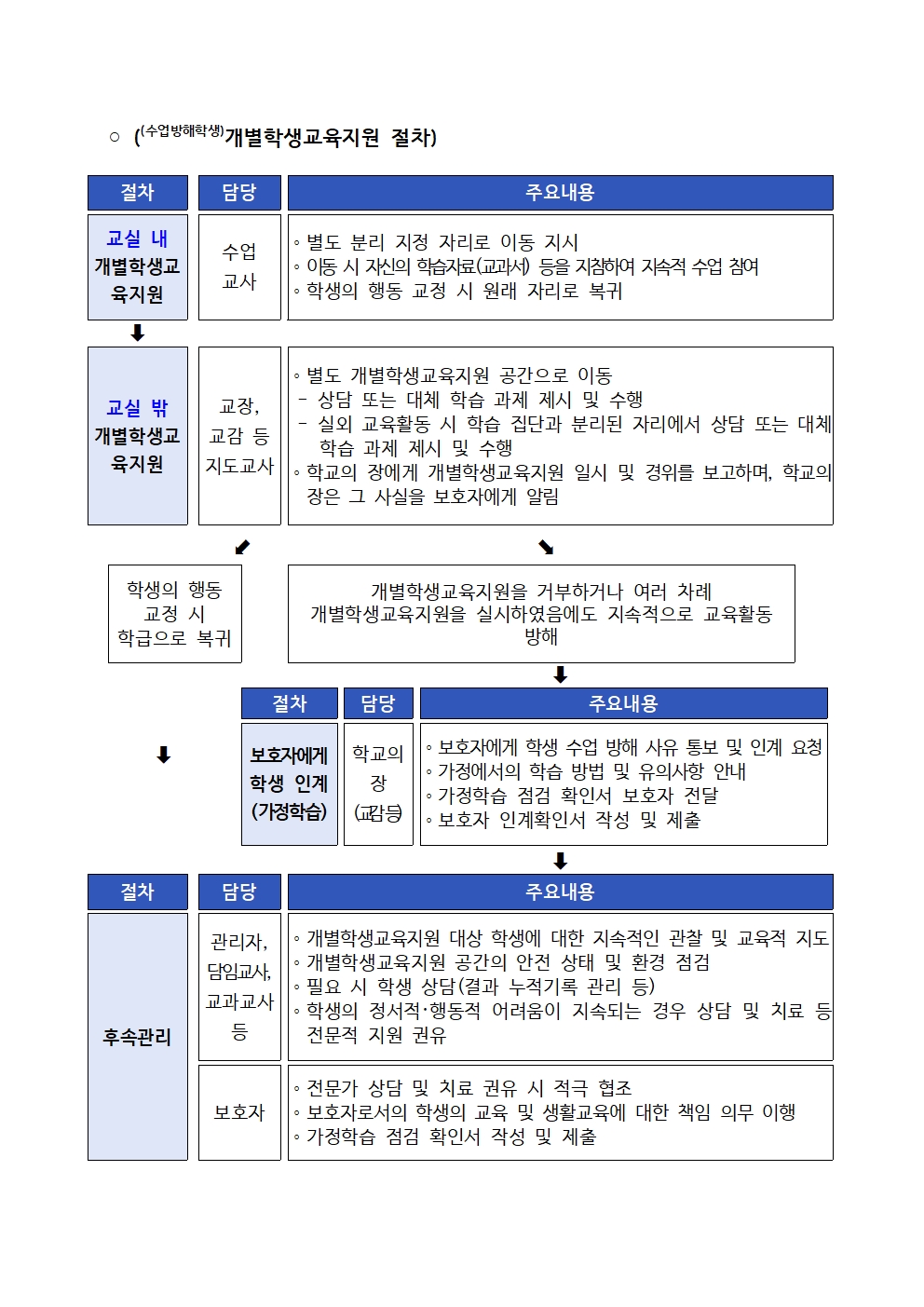 (수업방해학생) 개별학생교육지원 안내
