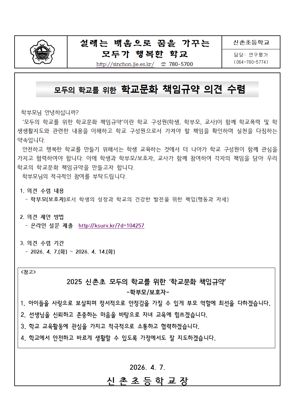 모두의 학교를 위한 학교문화 책임규약 의견 수렴