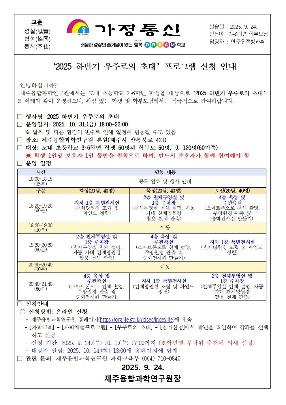 '2025 하반기 우주로의 초대' 프로그램 신청 안내