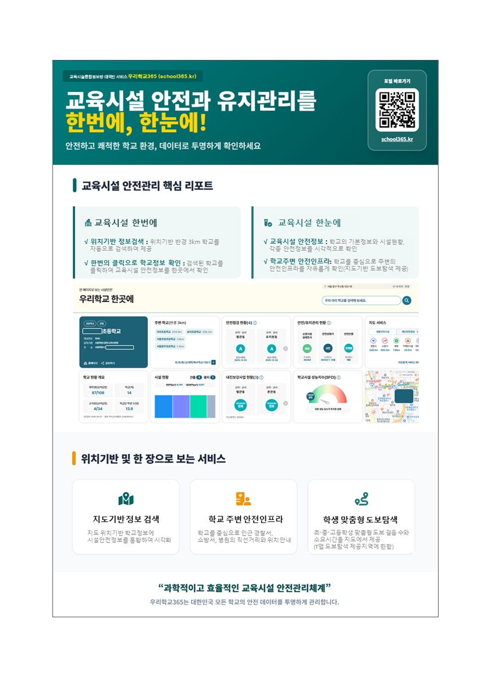 전국 학교의 모든 안전 정보를 담은 **'우리학교365'**가 운영 중에 있습니다.