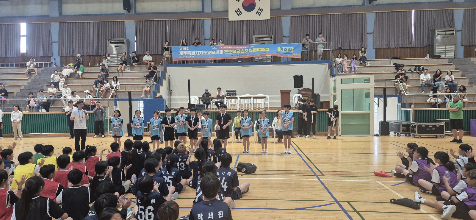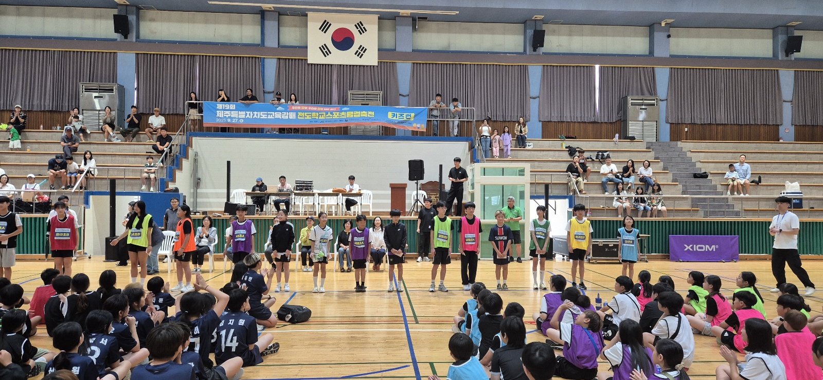 신산초등학교(교장 박진자) 3,4,5학년 학생들이 9월 27일(토) 제주제일고등학교 체육관에서 열린 『제19회 교육감배 전도학교 스포츠클럽 대회』 키즈런 부문 본선에 참가해 동메달을 수상했다. 이번 대회에는 도내 여러 학교가 참여해 치열한 경쟁을 펼쳤다.