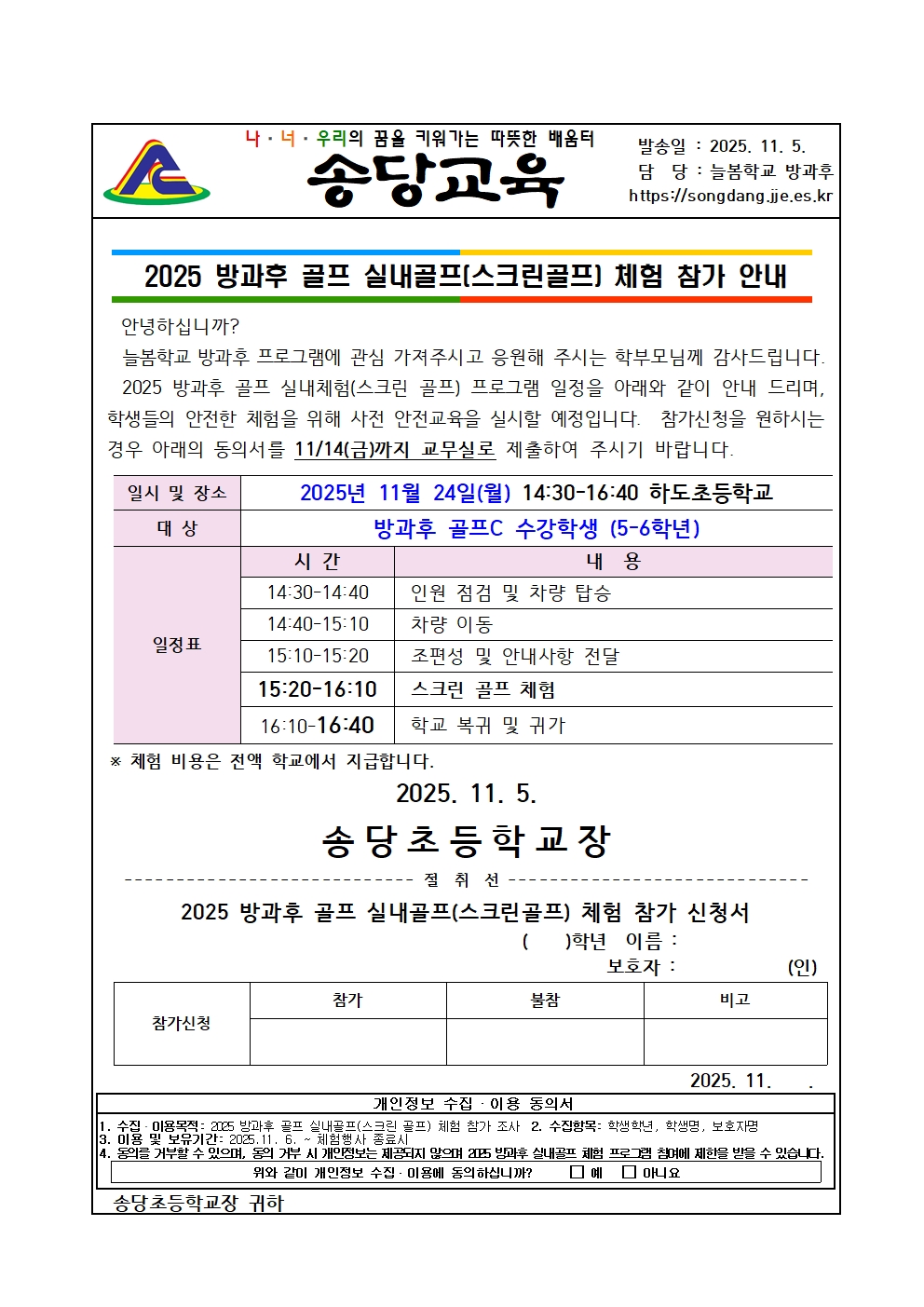 2025 방과후 골프 실내골프(스크린골프) 체험 참가 안내
