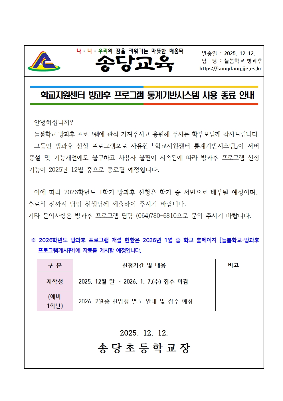 방과후 프로그램 통계기반시스템 사용 종료 안내