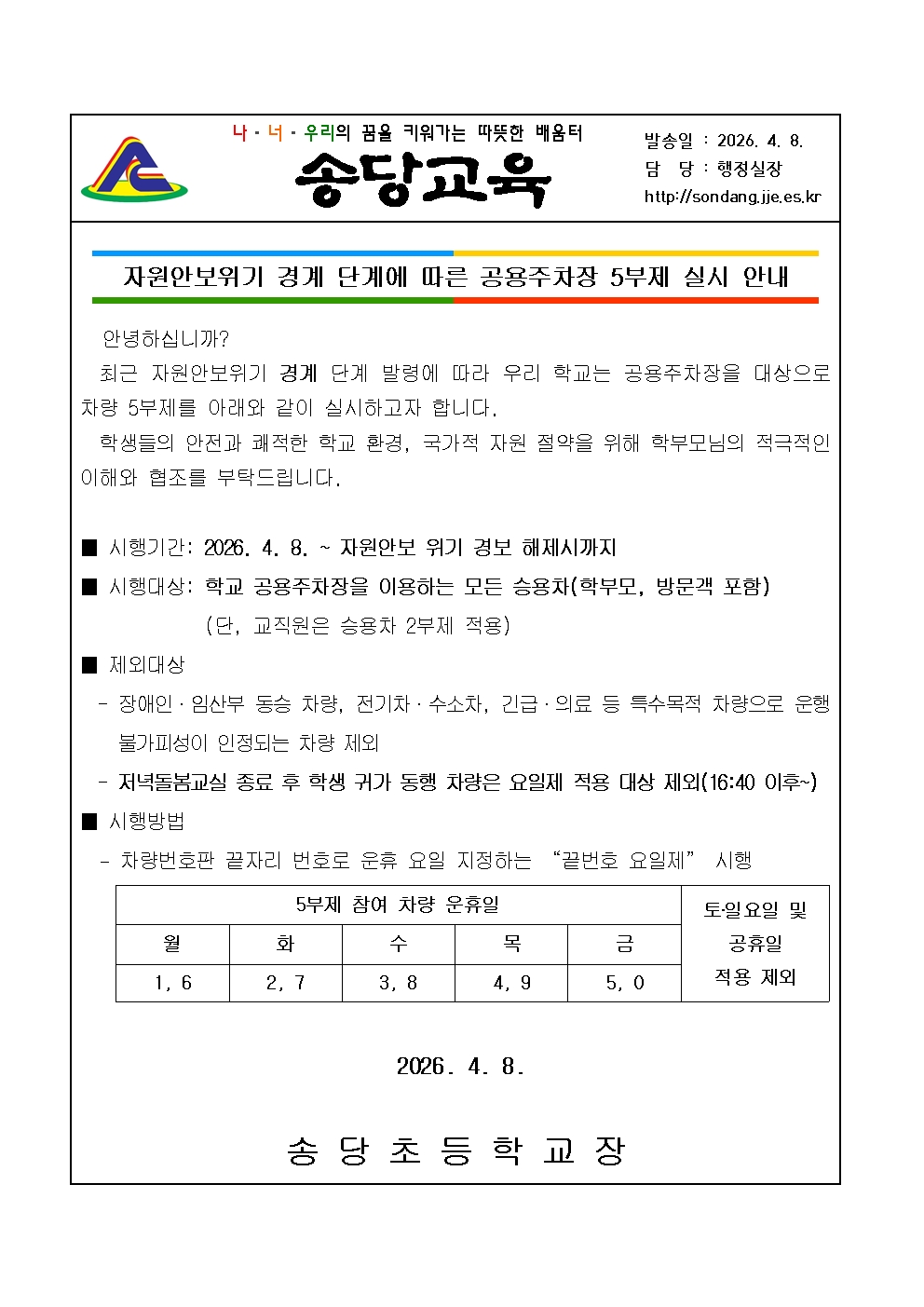 자원안보위기 경계 단계에 따른 공용주차장 5부제 실시 안내