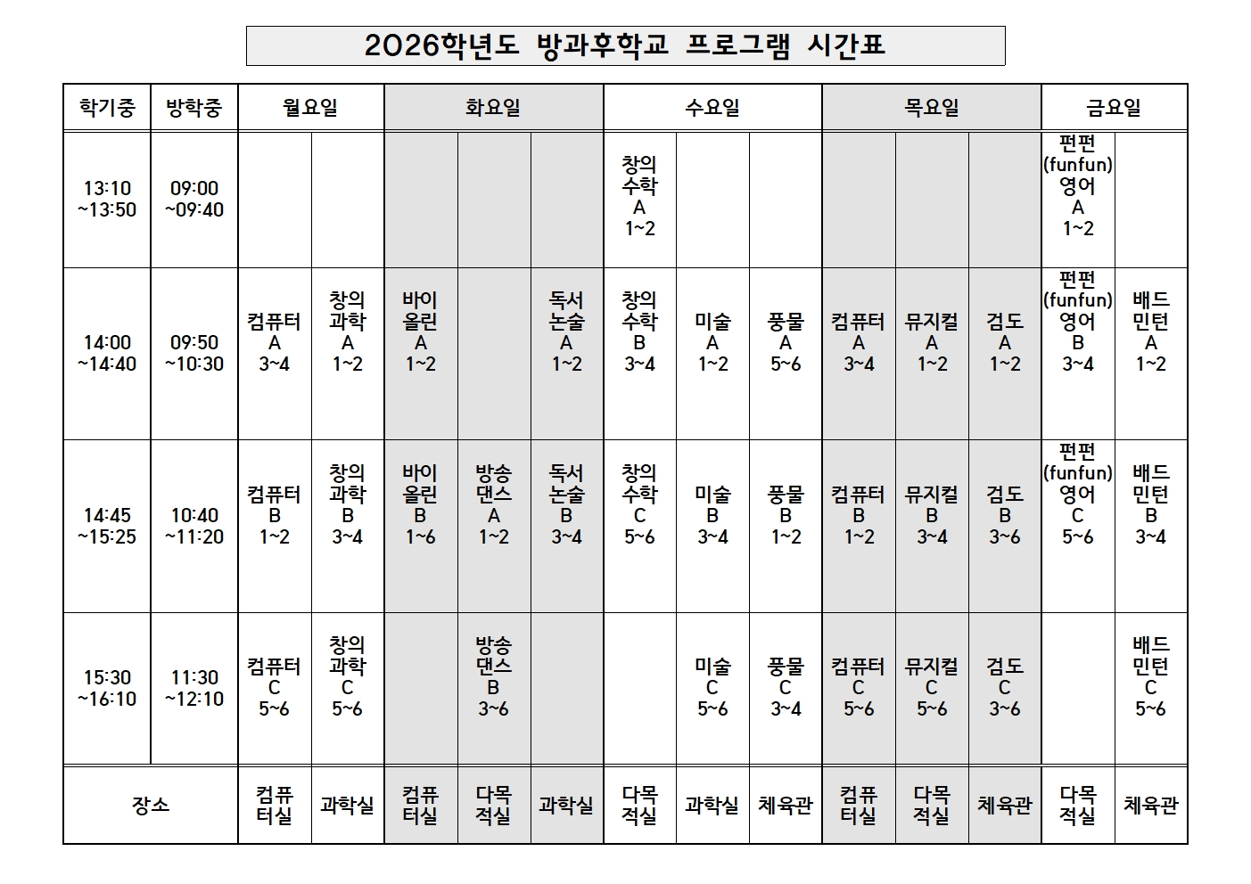 2026학년도 방과후학교 프로그램 시간표.hwp
