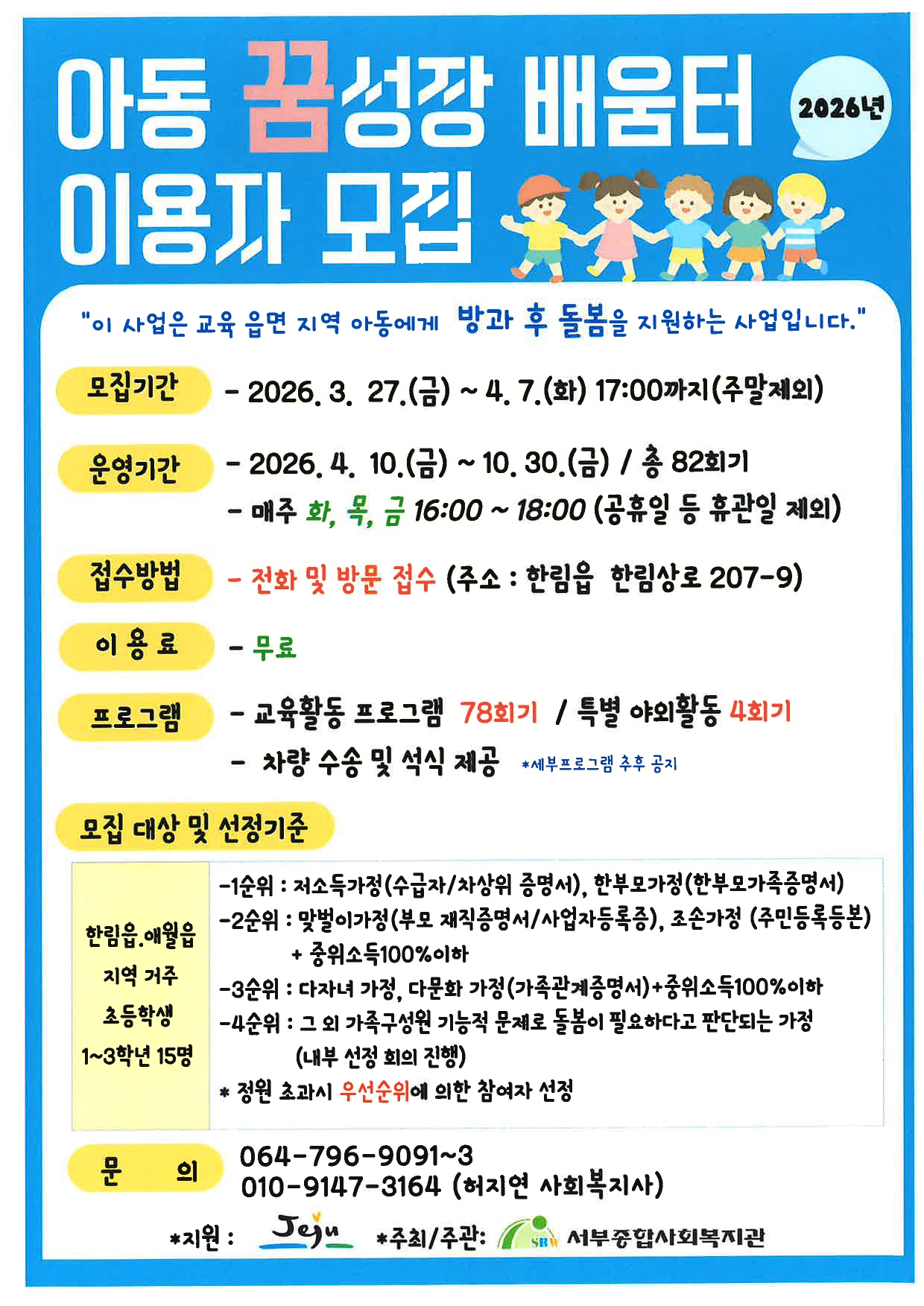 2026년 아동꿈성장 배움터 이용자 모집 안내_서부종합사회복지관