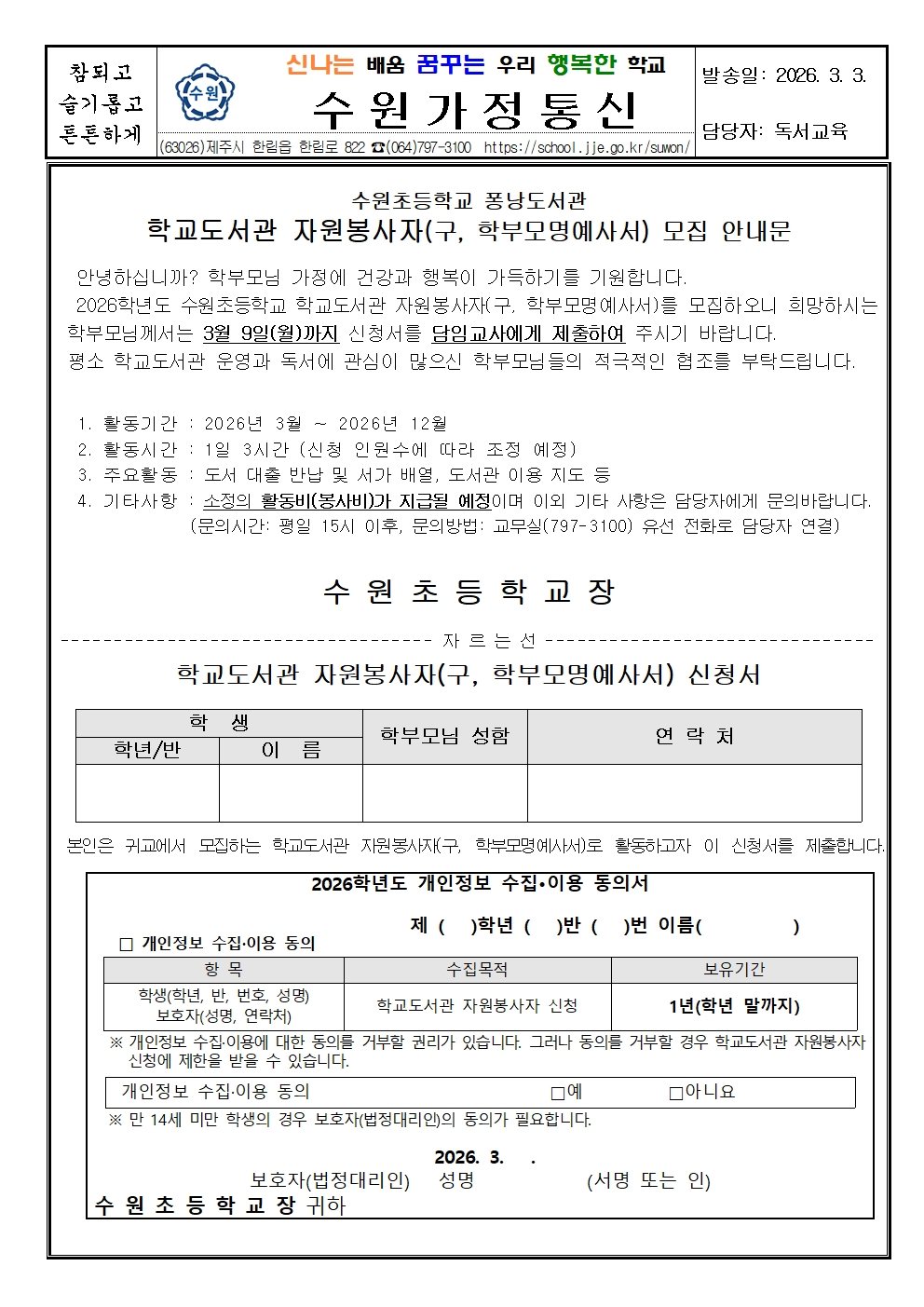 2026 학교도서관 자원봉사자(구,학부모명예사서교사) 모집 신청서(최종)001.jpg