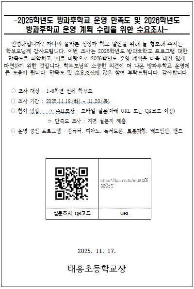 2025학년도 방과후 만족도 조사 및 2026학년도 수요조사 가정통신문 (태흥초) 최종.hwp
