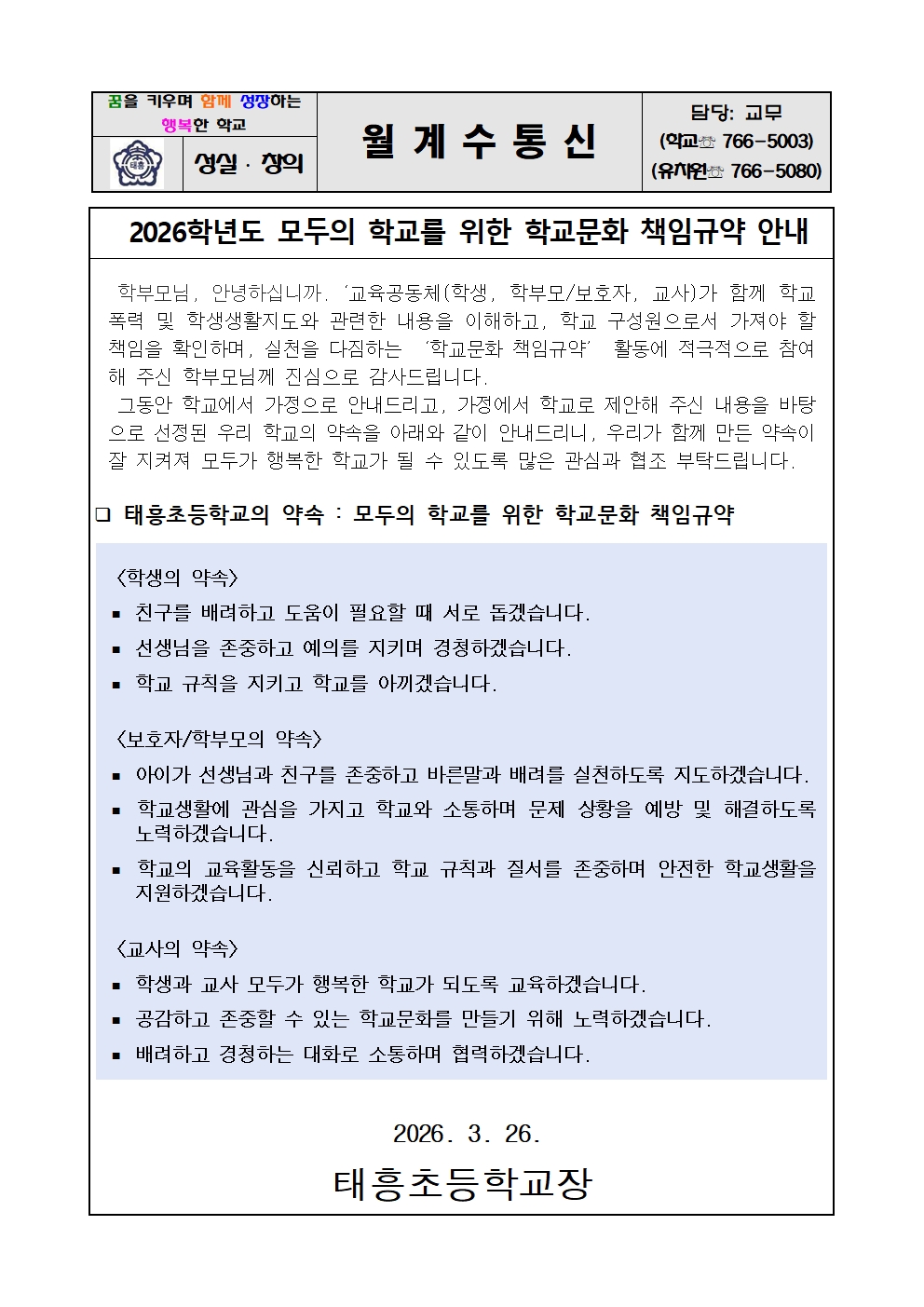 2026학년도 모두의 학교를 위한 학교문화 책임규약 안내