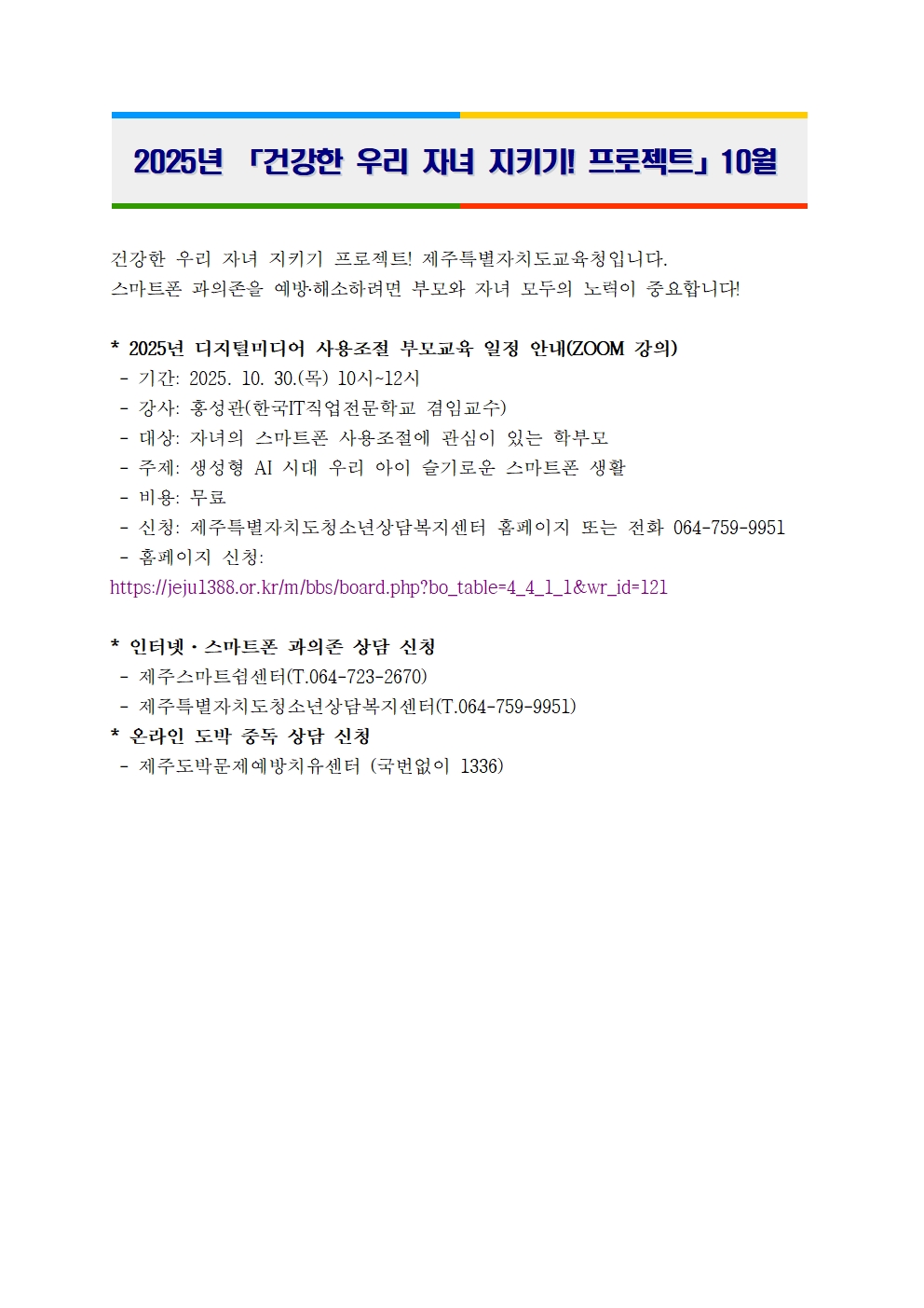 건강한 우리 자녀 지키기 프로젝트(10월)