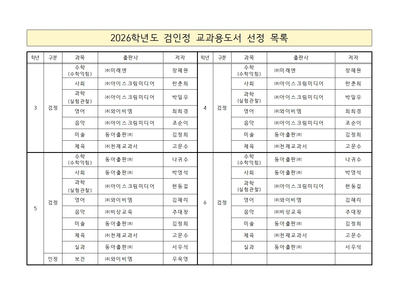 *3~6학년 국어, 도덕 과목은 국정 교과서를 사용합니다.