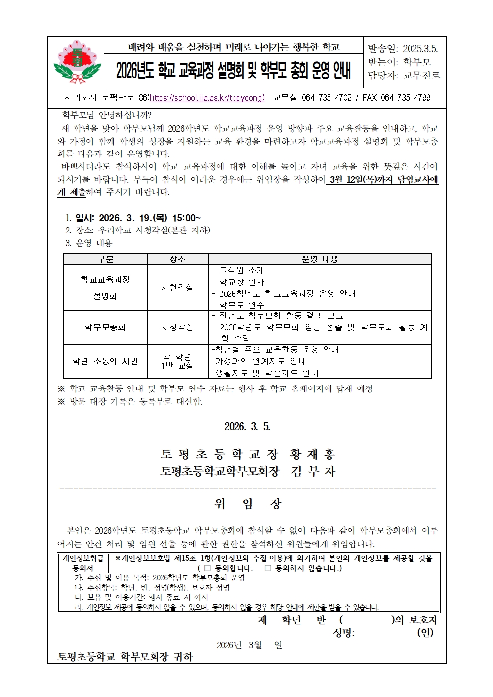 2026학년도 학교 교육과정 설명회 및 학부모 총회 안내