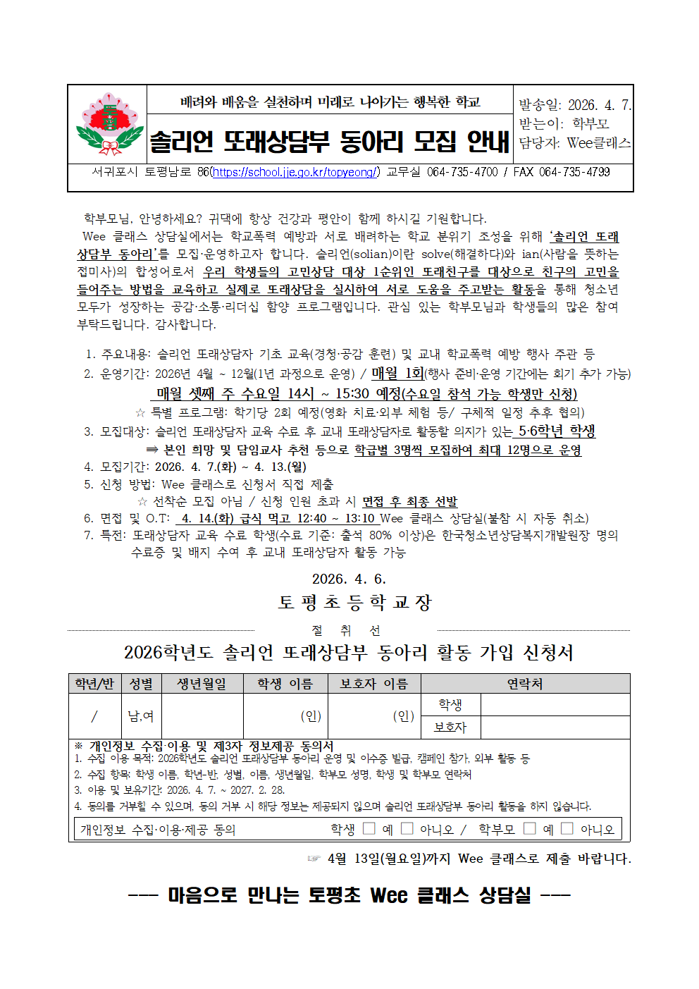 2026 솔리언 또래상담부 동아리 모집 안내 가정통신문.pdf