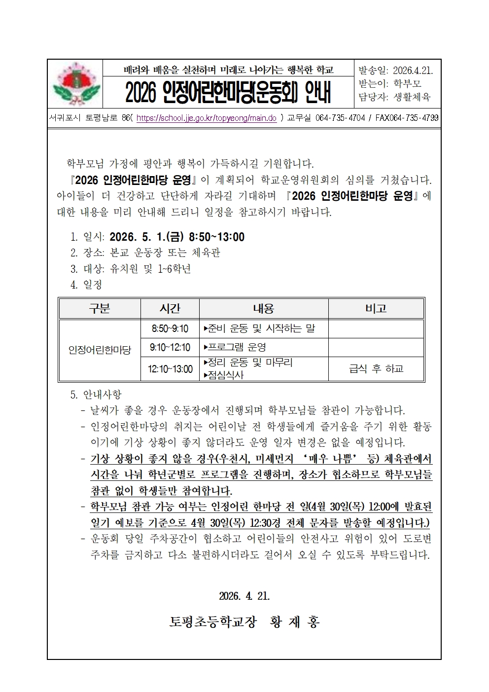 3. 2026학년도 인정어린한마당 안내 가정통신문.hwp
