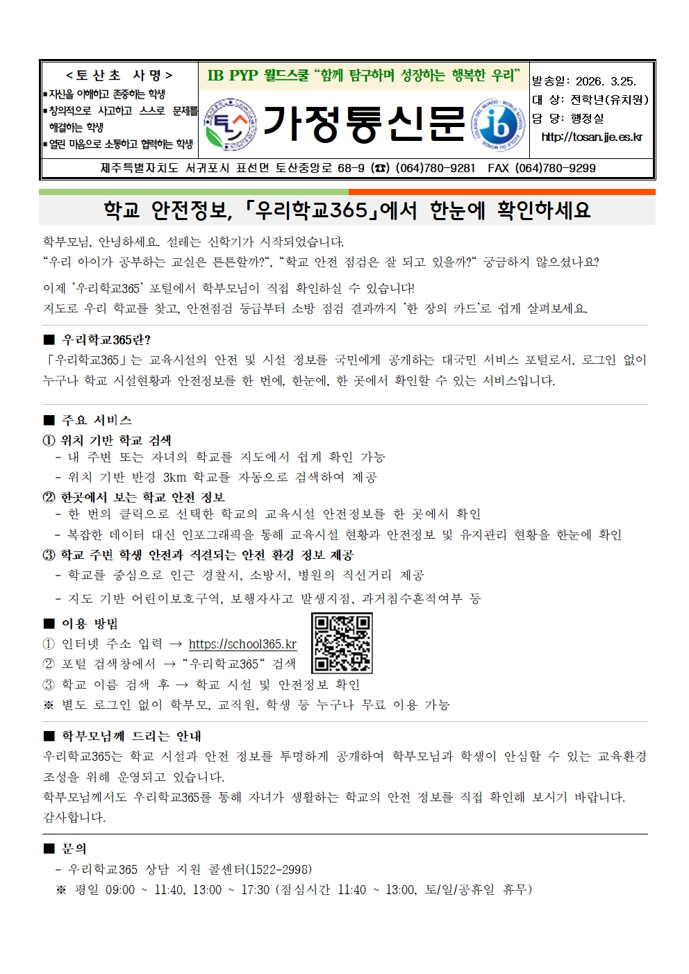 학교 안전정보, 「우리학교365」에서 한눈에 확인하세요
