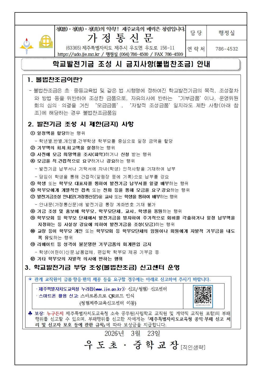 학교발전기금 조성 시 금지사항[불법찬조금] 안내
