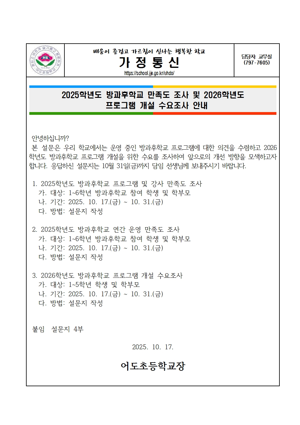 2025학년도 방과후학교 만족도 조사 및 2026학년도 프로그램 개설 수요조사 안내