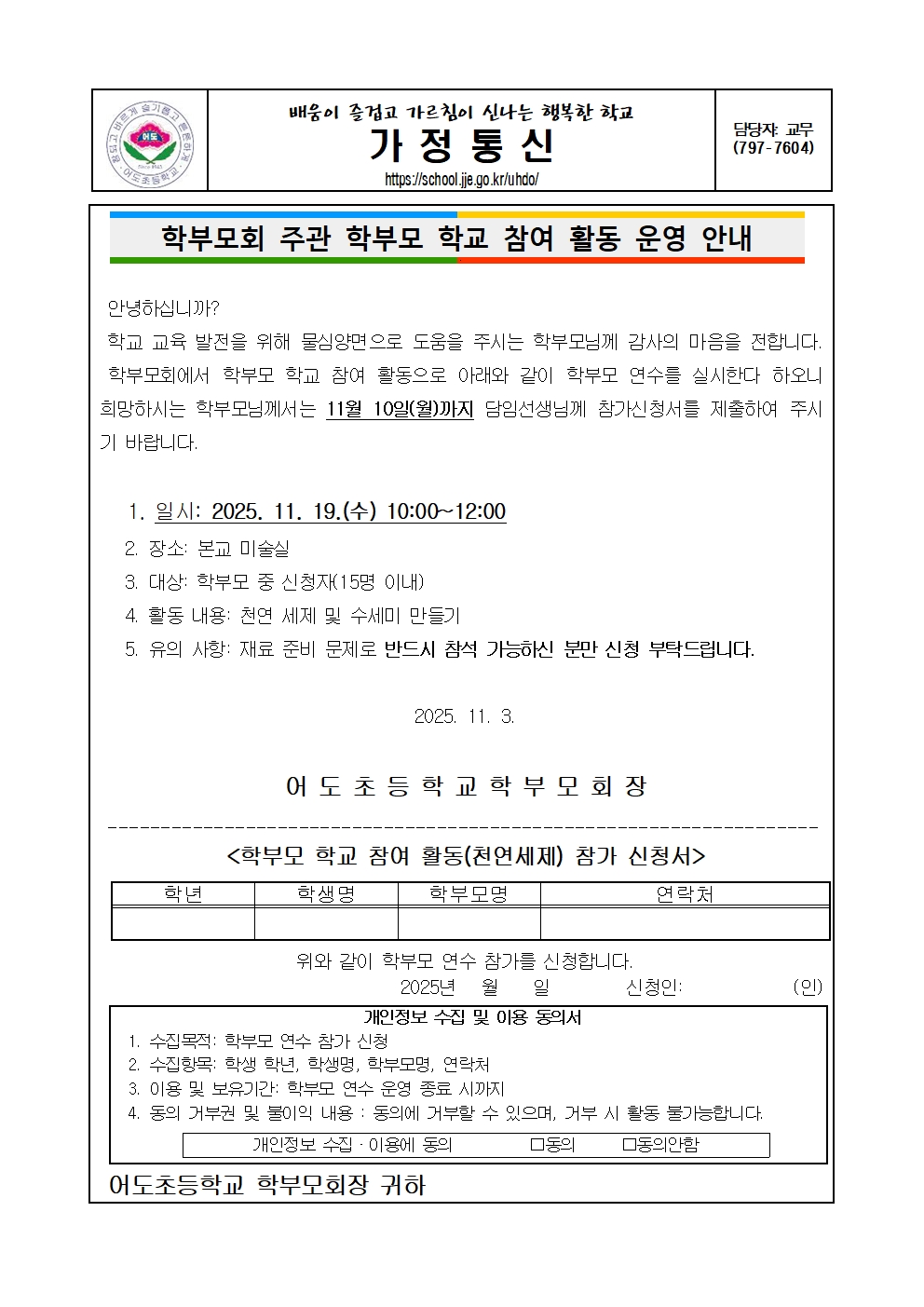 학부모회 주관 학부모 학교 참여 활동 운영 안내(11월)