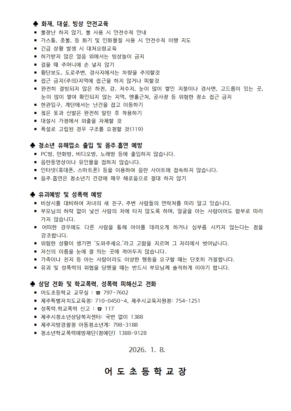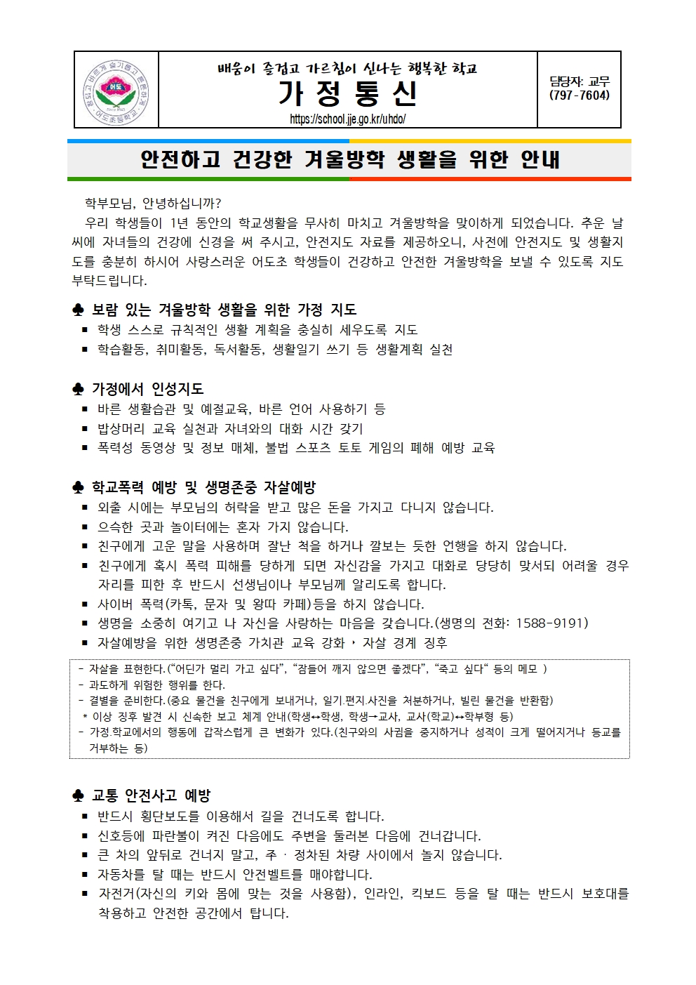 안전하고 건강한 겨울방학 생활을 위한 안내