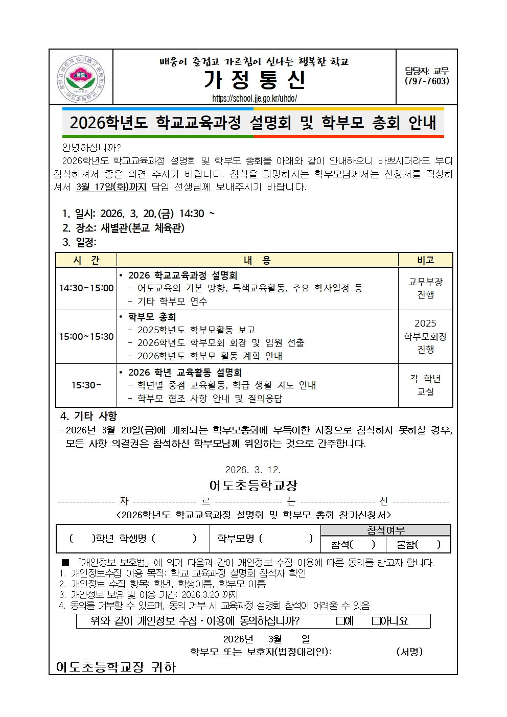 2026학년도 학교교육과정 설명회 및 학부모 총회 안내