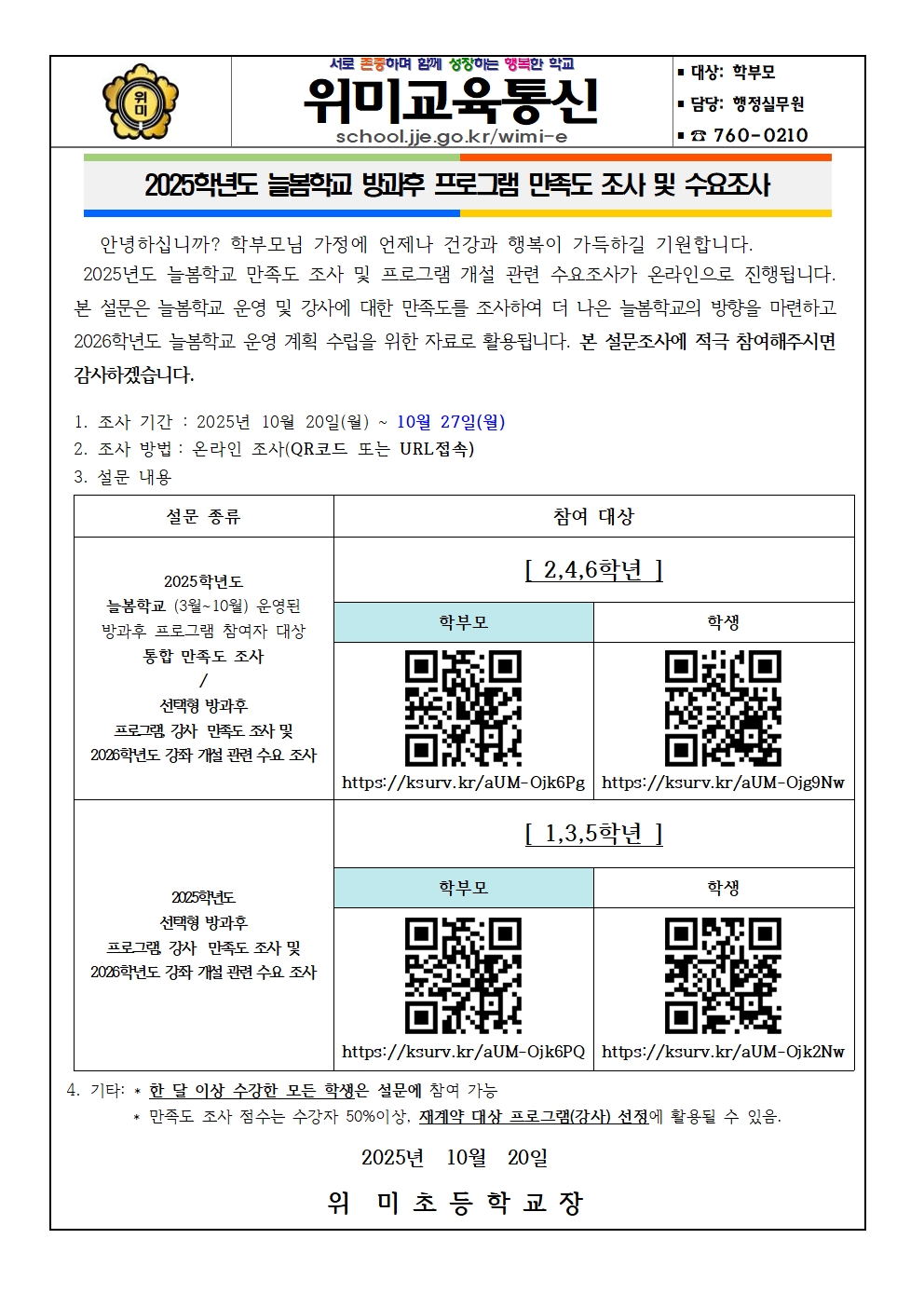 2025학년도 늘봄학교 방과후 프로그램 만족도 조사 및 수요조사