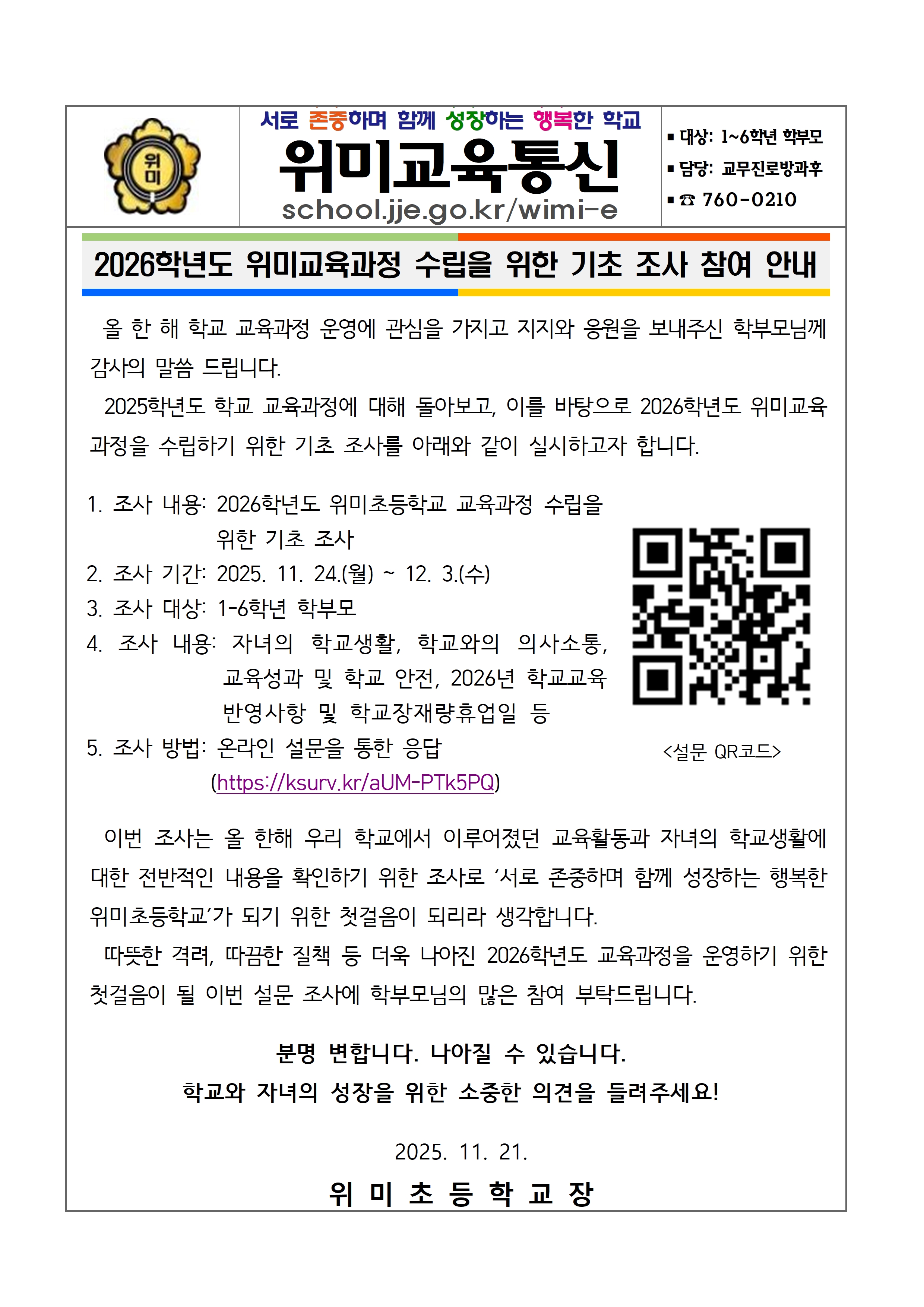 2026학년도 위미교육과정 수립을 위한 기초 조사 참여 안내