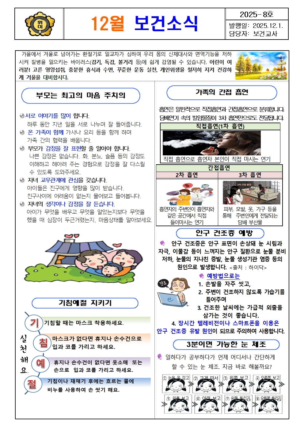 학부모 대상 재난안전 인식도 진단 실시 안내
