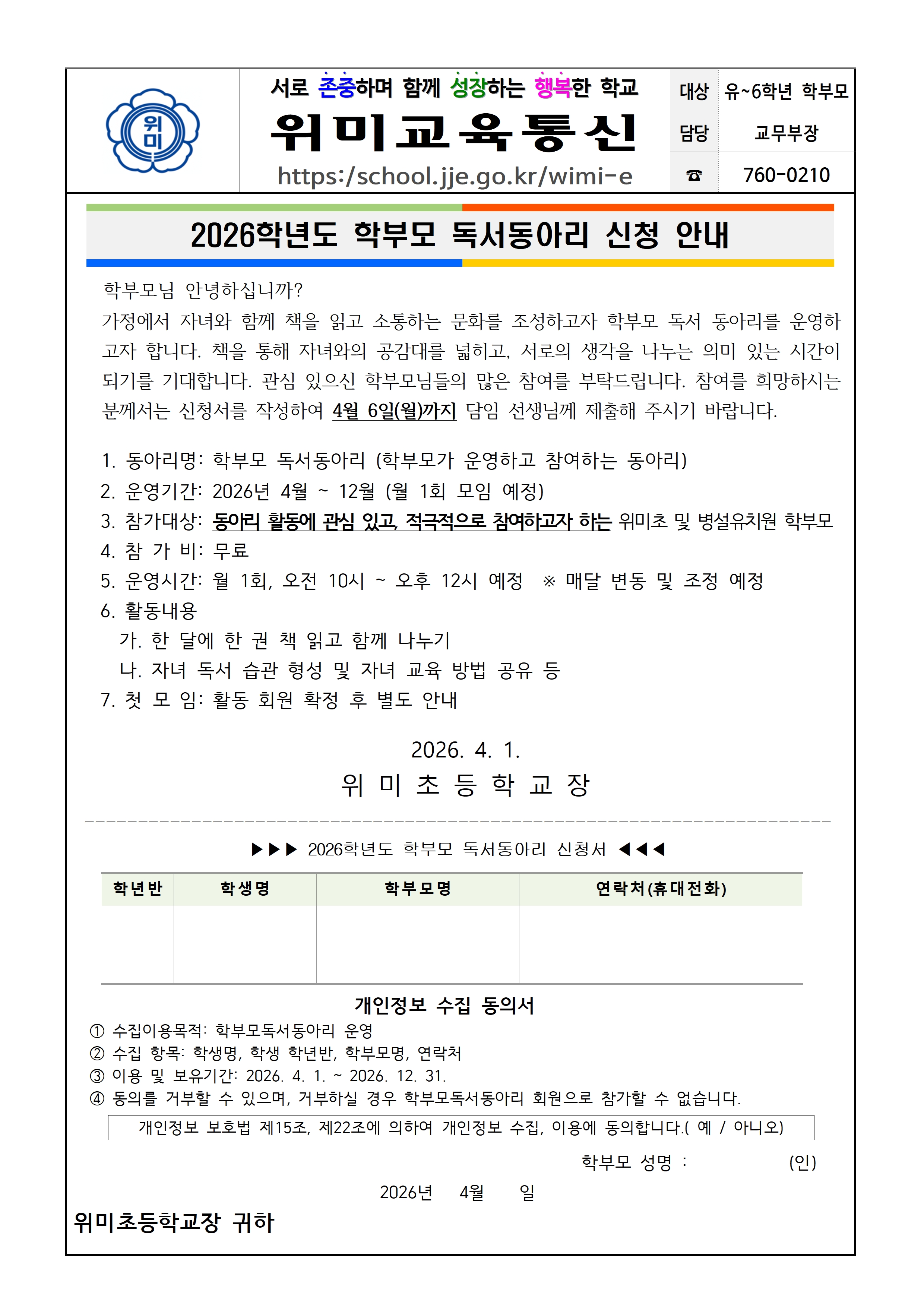 2026학년도 학부모 독서동아리 신청 안내