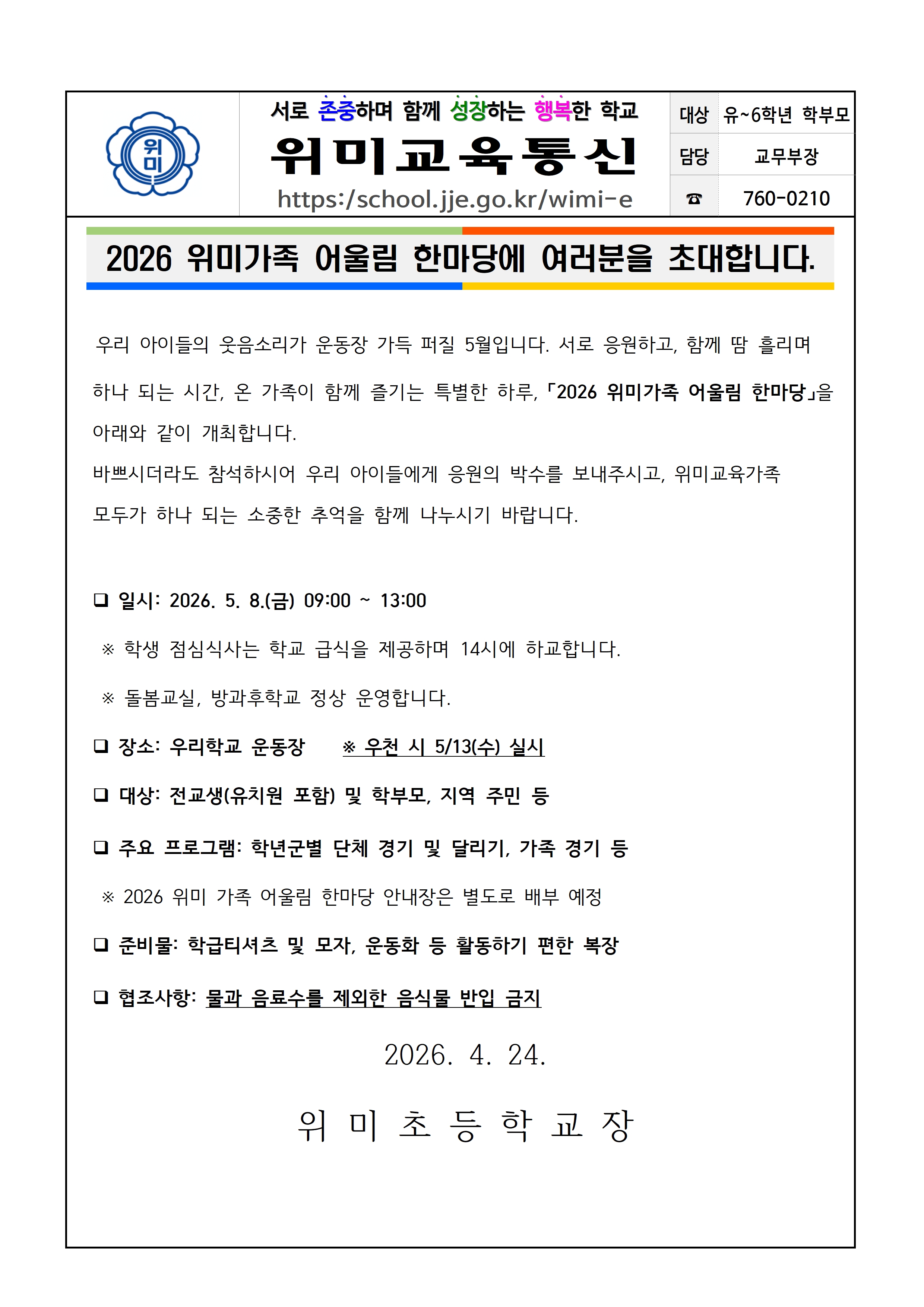 2026 위미가족 어울림 한마당에 여러분을 초대합니다.