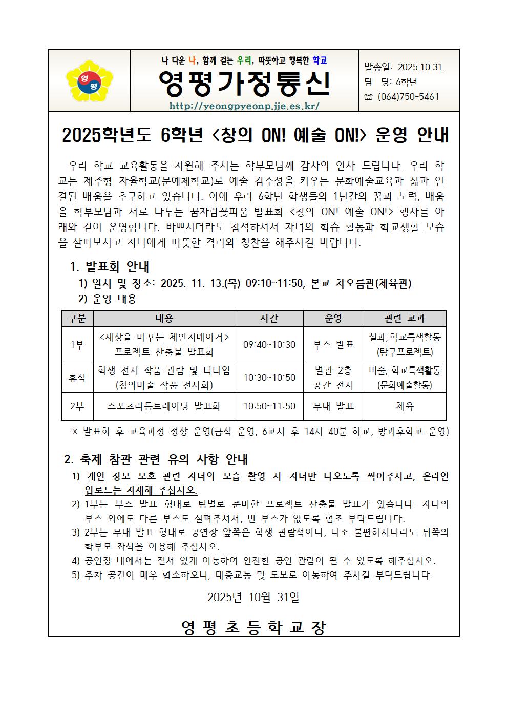 2025학년도 6학년 창의 ON! 예술 ON! 운영 안내 가정통신문.hwp