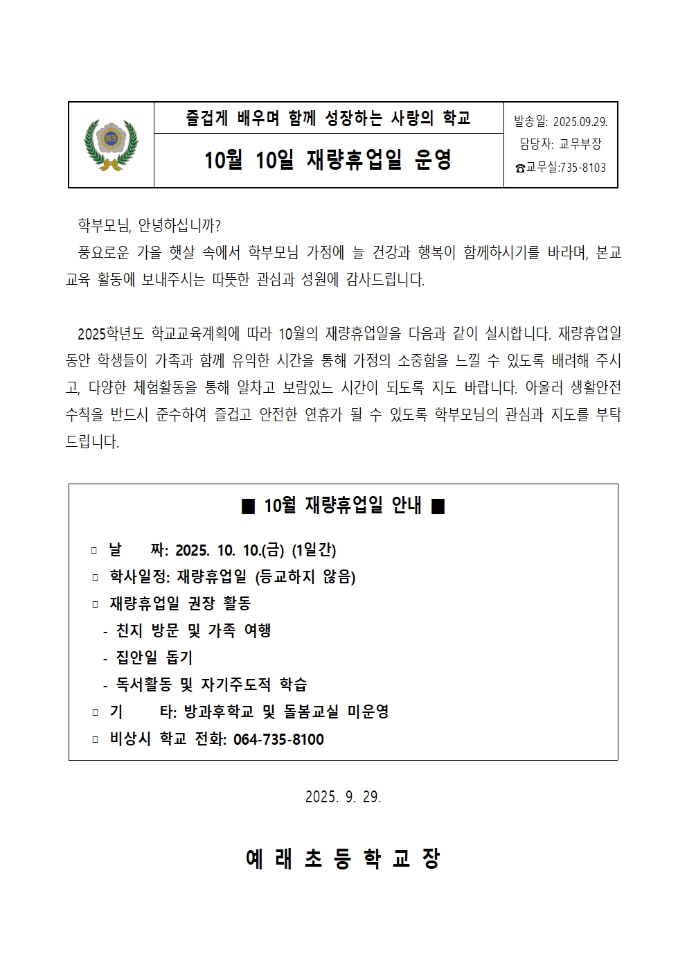 즐겁게 배우며  함께 성장하는  사랑의 학교  예래초등학교 방문을 환영합니다.