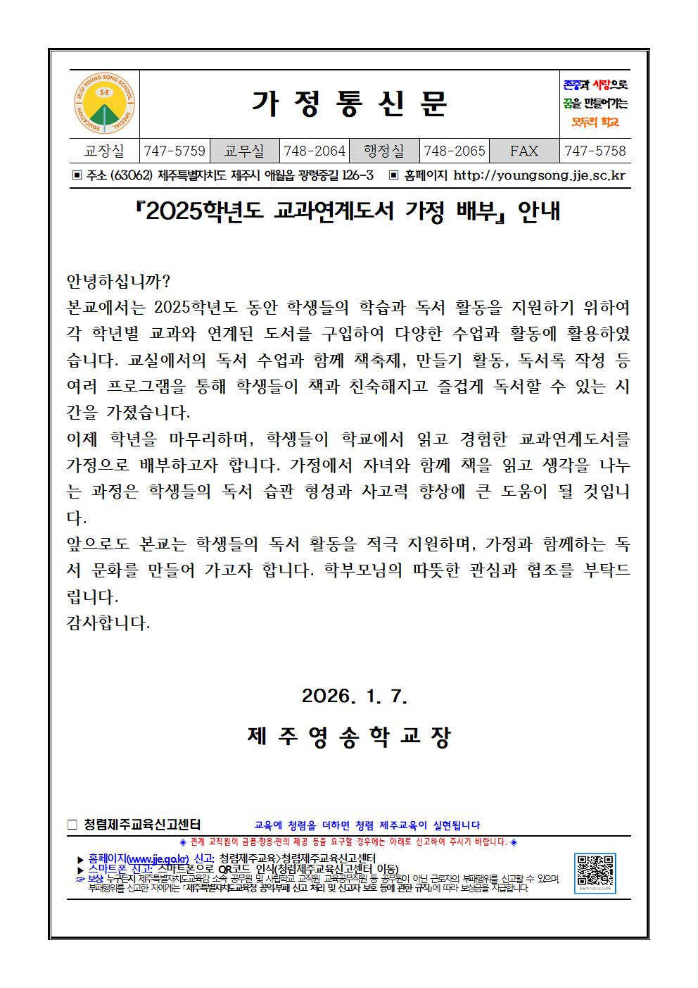 2025학년도 교과연계도서 배부 안내(가정통신문).hwp