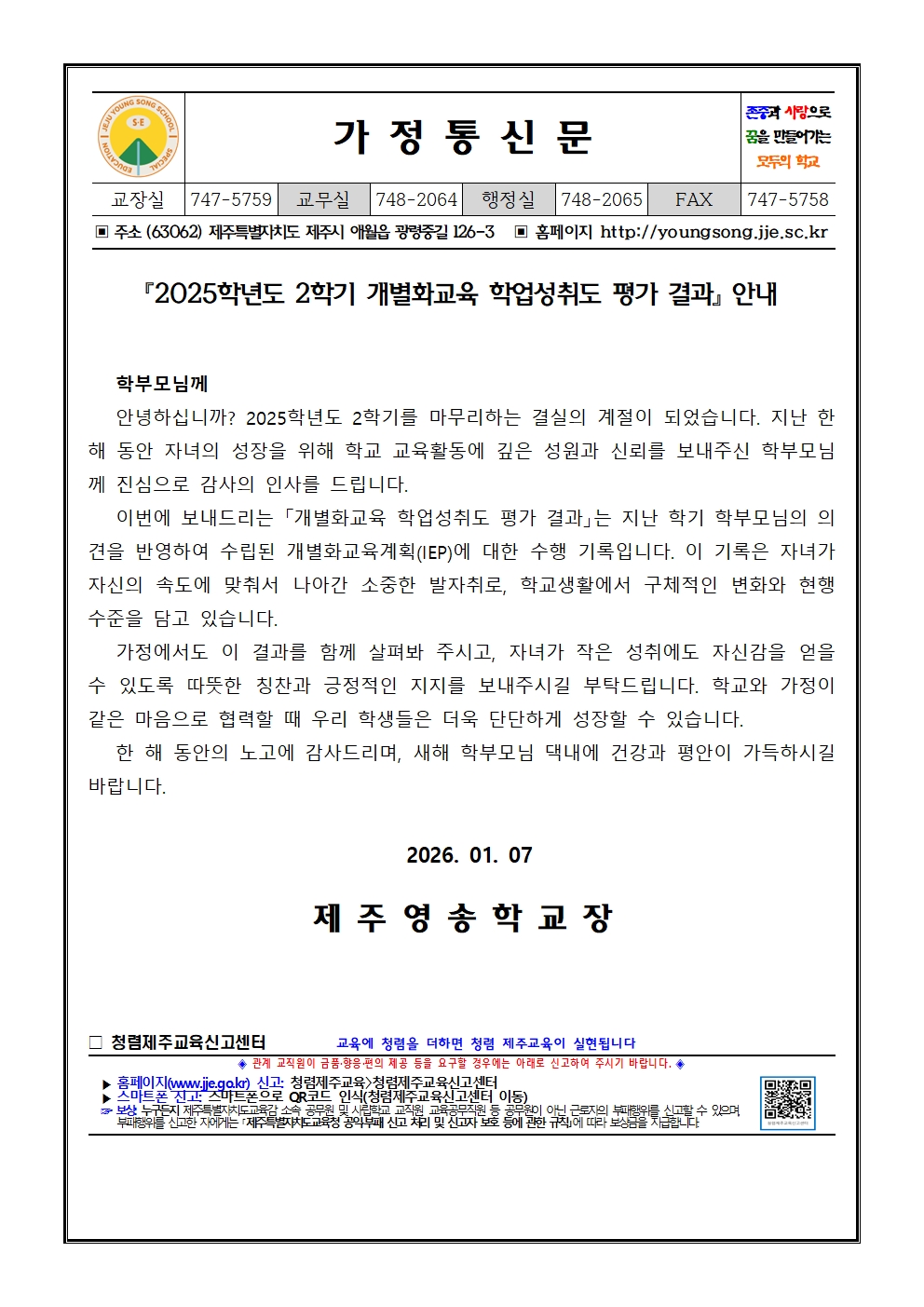 2025학년도 2학기 개별화교육 학업성취도 평가 결과 안내