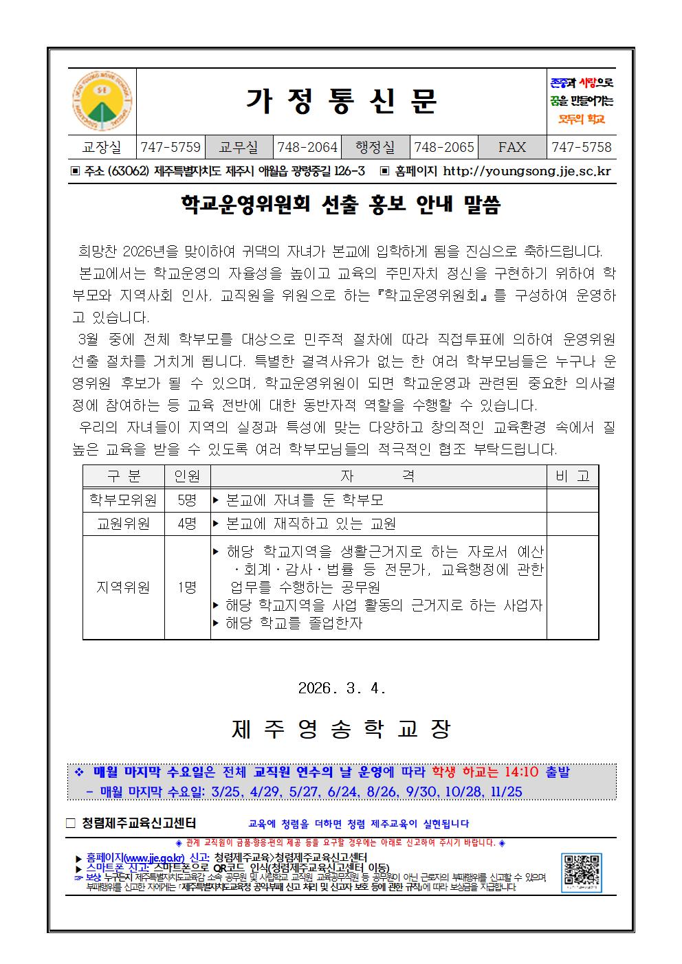 2026학년도 학교운영위원회 선출 홍보 안내