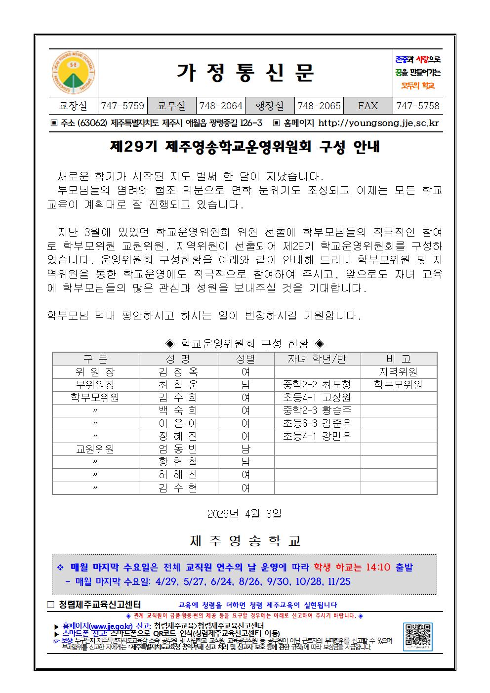 제주영송학교 제29기 학교운영위원회 구성 홍보